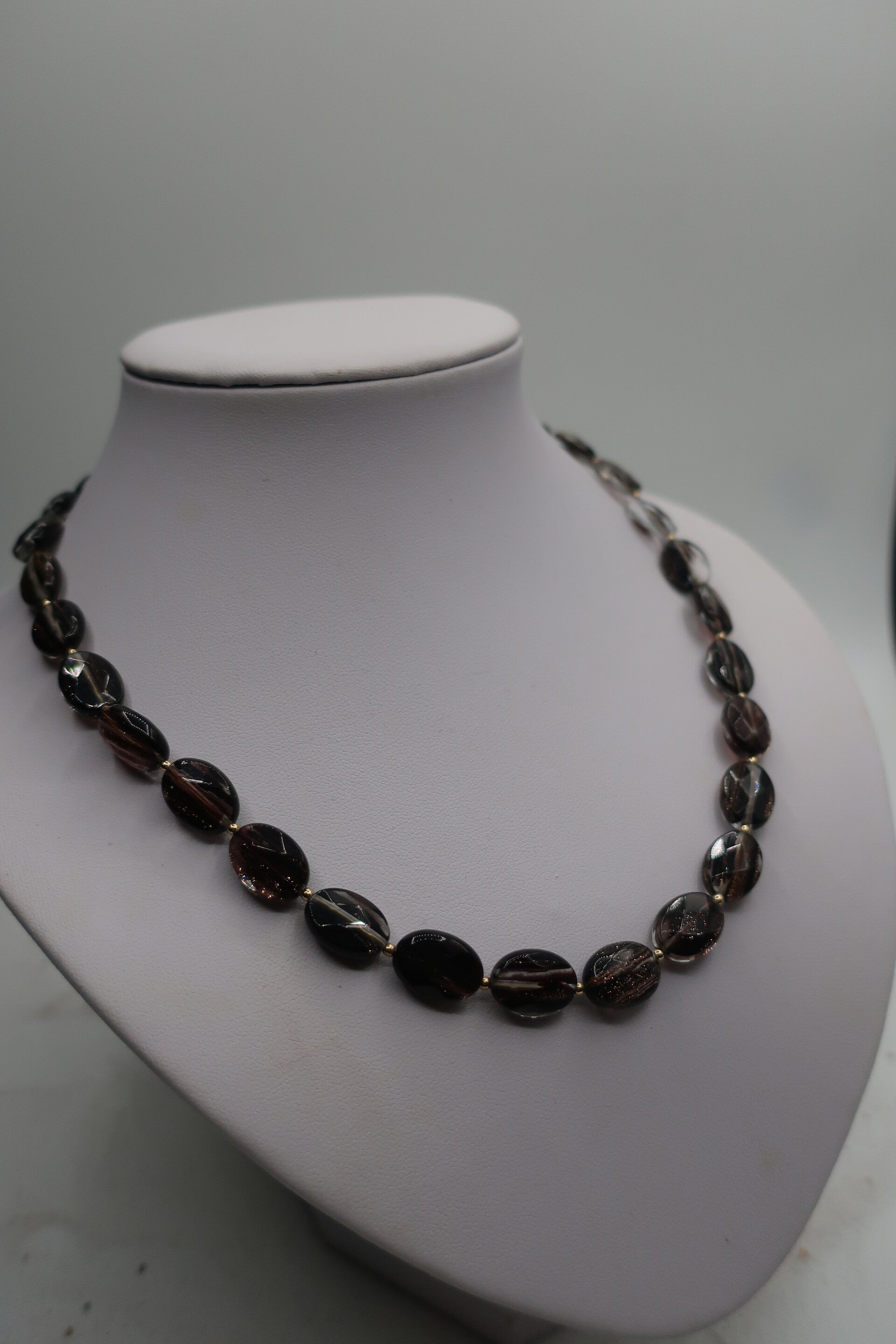 Heel mooi collier van bruinkleurige transparante goudsteen met magnetisch slotje.